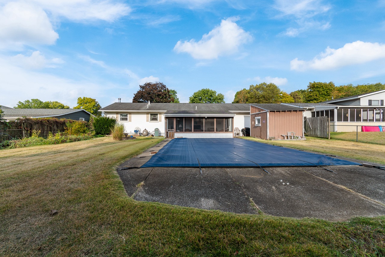 Real Estate: Well-maintained ranch style home, built in 1971, situated on 0.28-acre lot in conveniently located quiet neighborhood. Offering 1,107 sq. ft. living space on main level, 3 bedrooms and one full bath, with eat-in kitchen, and covered sun porch on rear. Full basement with approx. 554 sq. ft. finished rec room with fireplace, bar area, and split full bath. Ample storage space, updated FA gas furnace and AC, breaker electric, with public utilities. Fenced backyard features a 34x16ft in-ground pool and newer 12x10ft storage shed. Attached 2-car garage. Approx. half year taxes are $1,213. Stark County parcel #4310610. Ideal home for owner occupiers or investors. Tasteful dated and ready for updates or sprucing up to your liking. Home will be open for inspection morning of auction beginning at 10:30 AM. Call for private showing.